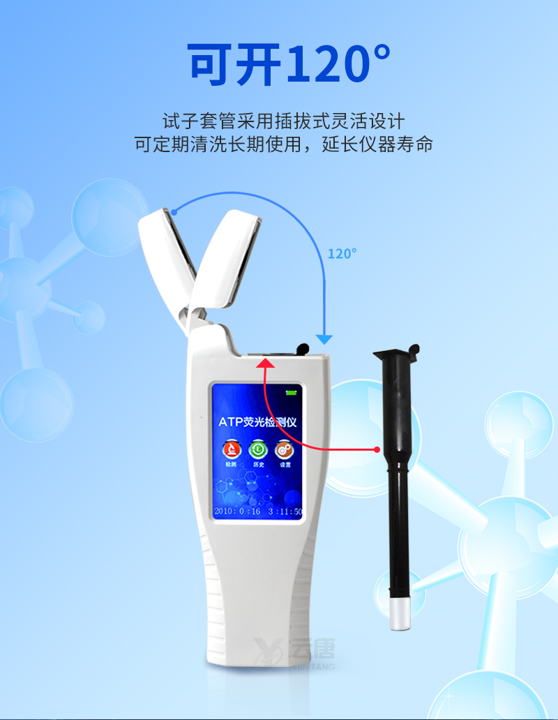 ATP熒光檢測(cè)儀操作采用生物化學(xué)反應(yīng)方法檢測(cè)ATP含量,ATP熒光檢測(cè)儀基于螢火蟲發(fā)光原理,利用“熒光素酶—熒光素體系”快速檢測(cè)三磷酸腺苷(ATP)。ATP拭子含有可以裂解細(xì)胞膜的試劑,能將細(xì)胞內(nèi)ATP釋放出來,與試劑中含有的特異性酶發(fā)生反應(yīng),產(chǎn)生光,再用熒光照度計(jì)檢測(cè)發(fā)光值,微生物的數(shù)量與發(fā)光值成正比,由于所有生物活細(xì)胞中含有恒量的ATP,所以ATP含量可以清晰地表明樣品中微生物與其他生物殘余的多少,用于判斷衛(wèi)生狀況。