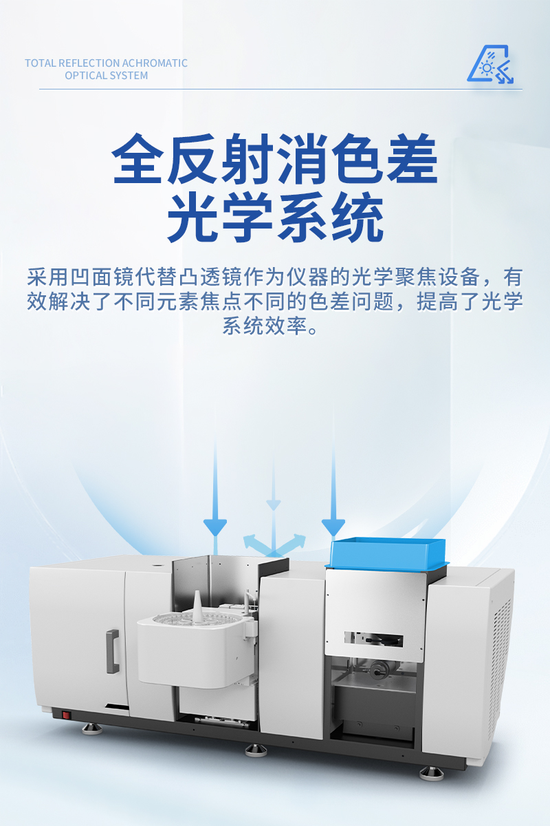 采用凹面鏡代替凸透鏡作為儀器的光學聚焦設備,有效解決了不同元素焦點不同的色差問題,提高了光學系統效率。