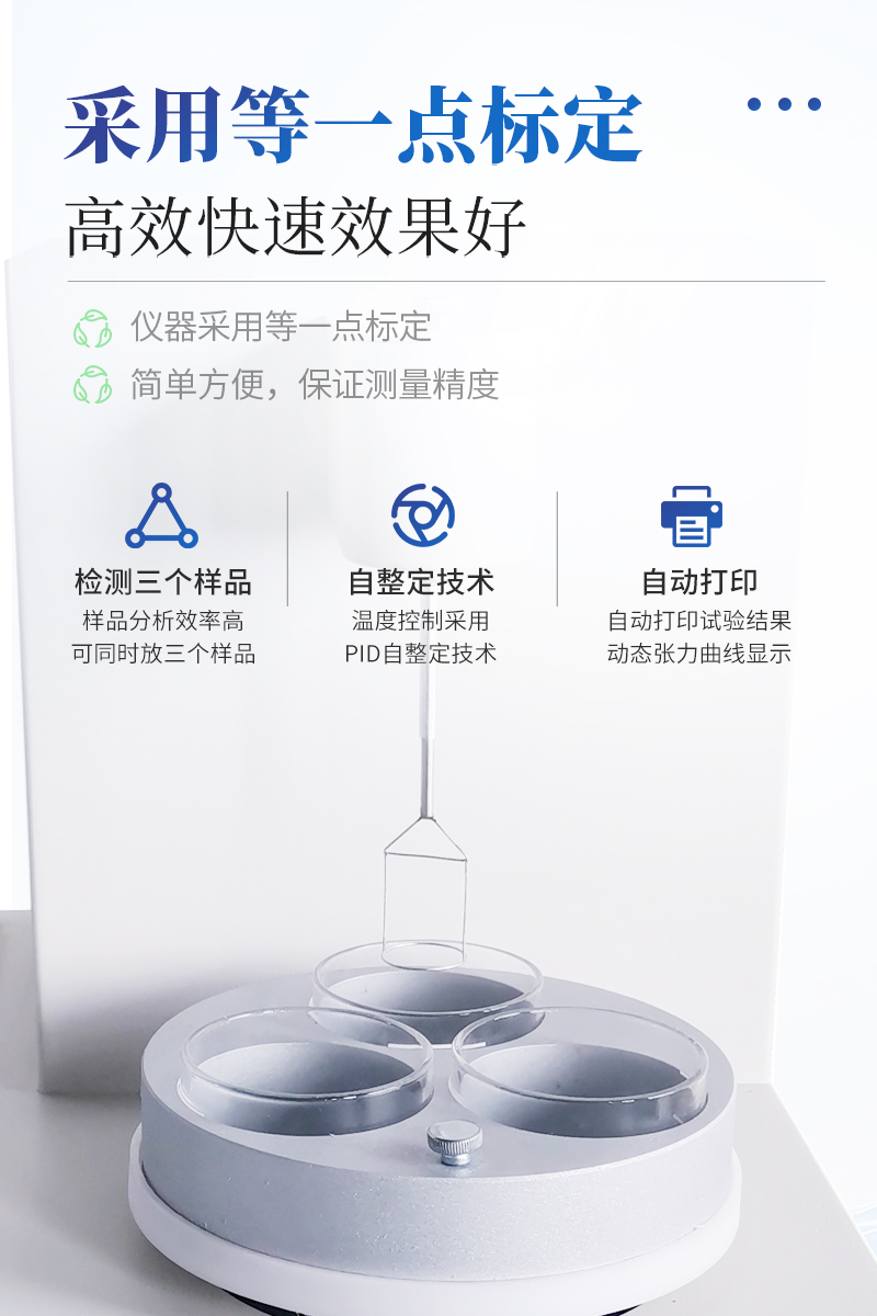 儀器特點(diǎn)★ 在正常環(huán)境溫度下,純水標(biāo)定、油樣測(cè)試整個(gè)過程溫度控制在25±1℃。★ 溫度控制采用PID自整定技術(shù)★ 樣品分析效率高,可同時(shí)放三個(gè)樣品★ 使用不同測(cè)量環(huán)儀器自動(dòng)修正參數(shù)★ 自動(dòng)打印試驗(yàn)結(jié)果,動(dòng)態(tài)張力曲線顯示★儀器采用等一點(diǎn)標(biāo)定,簡(jiǎn)單方便,保證測(cè)量精度;★高清晰彩色觸摸