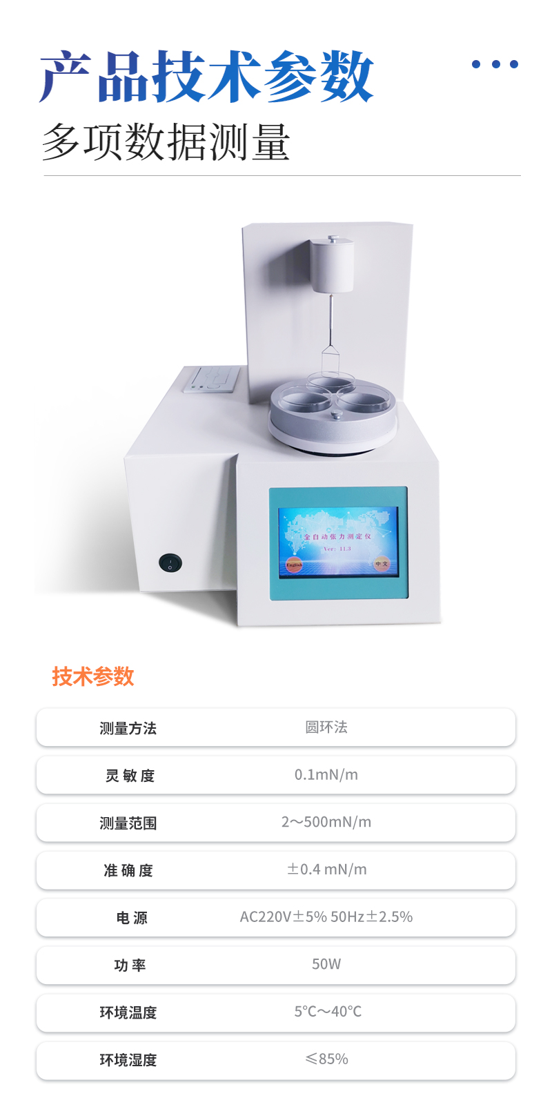 ★ 測(cè)量范圍:2~500mN/m
