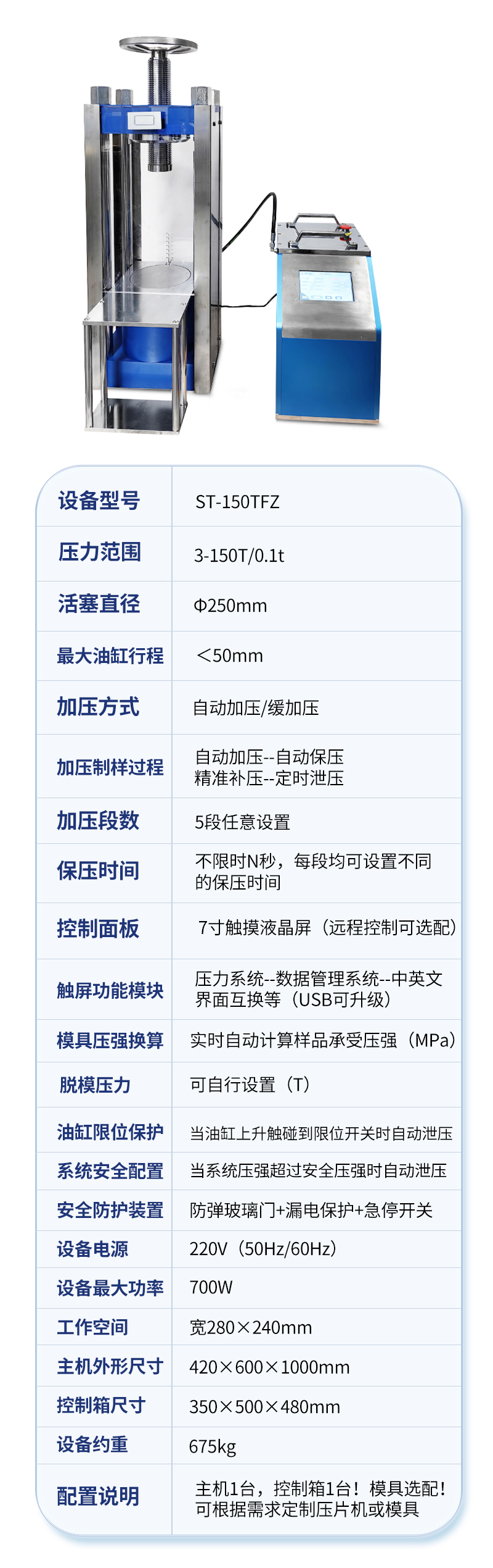 | 模具壓強(qiáng)換算 | 實(shí)時(shí)自動(dòng)計(jì)算樣品承受壓強(qiáng)(MPa) |