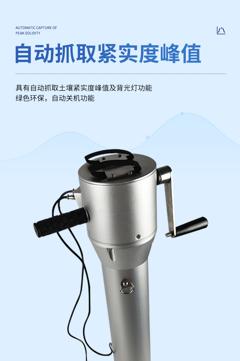 具有自動(dòng)抓取土壤緊實(shí)度峰值及背光燈功能,綠色環(huán)保,自動(dòng)關(guān)機(jī)功能。