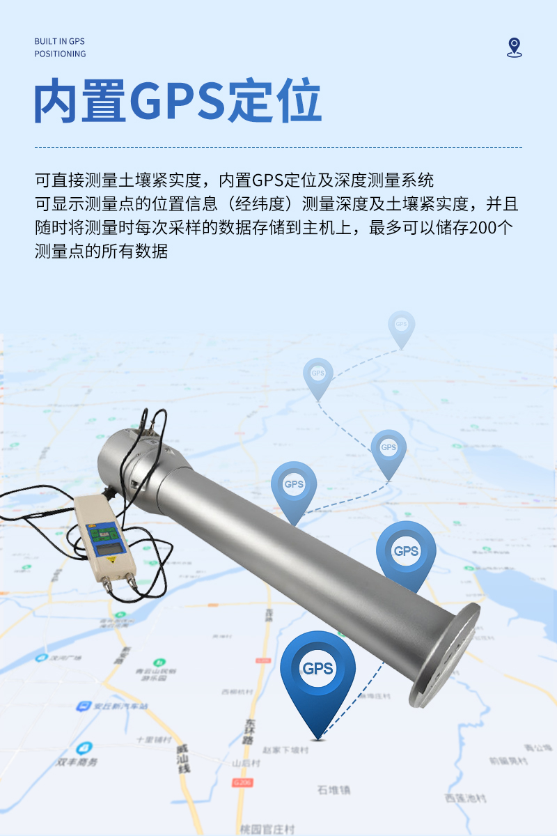可直接測(cè)量土壤緊實(shí)度,內(nèi)置GPS定位及深度測(cè)量系統(tǒng),可顯示測(cè)量點(diǎn)的位置信息(經(jīng)緯度)測(cè)量深度及土壤緊實(shí)度,并且可以隨時(shí)將測(cè)量時(shí)每次采樣的數(shù)據(jù)存儲(chǔ)到主機(jī)上,*多可以儲(chǔ)存200個(gè)測(cè)量點(diǎn)的所有數(shù)據(jù)。